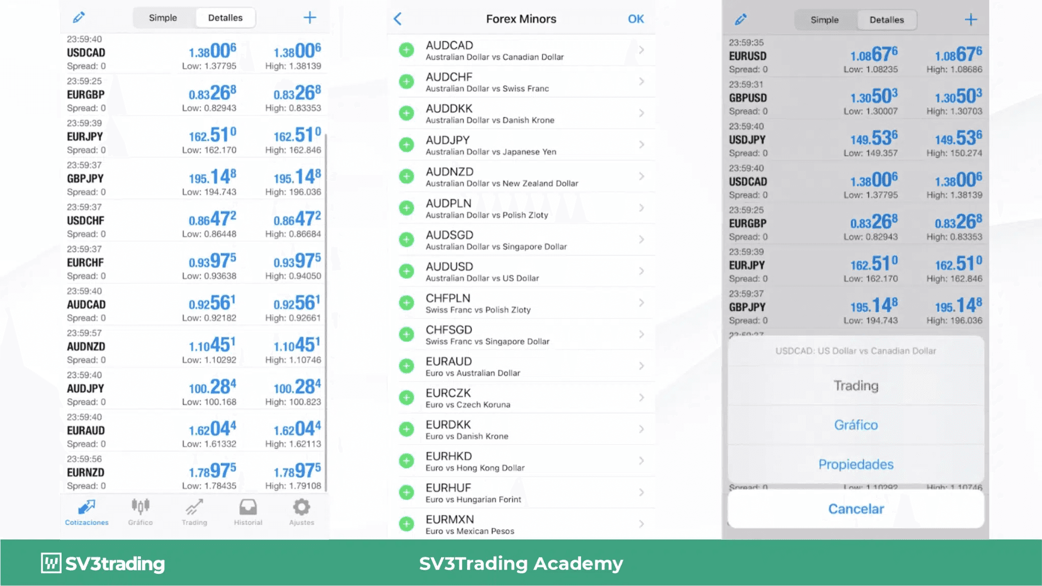 Aquí encontrarás varios pares con dos pestañas superiores: “Simples” y “Detalles”.